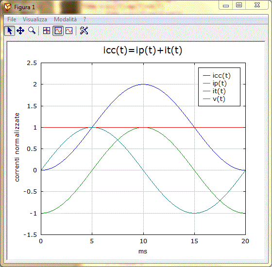 - Nei grafici le grandezze sono normalizzate: le correnti riferite al valore massimo della componente a regime permanente, la tensione al suo valore massimo.