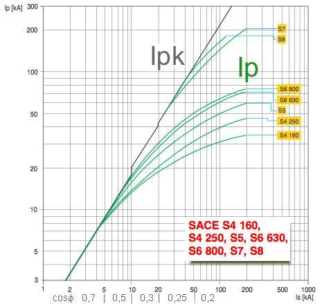 Ad esempio l'interruttore S4 160 limita il picco di una corrente presunta di 30 kA, che sarebbe di 63 kA, a circa 21 kA.