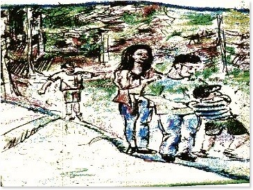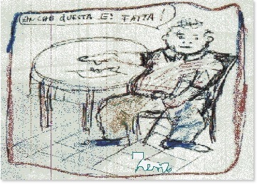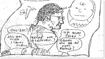 Subisce perciò in silenzio una mitragliata di fastidiose domande: “...dov’eri?..”, ”...hai avuto paura?..”, “... perché non rispondevi? ”, “...quando non hai più visto Marisa?..”, “...non hai visto i segni gialli?..”. Però lo scampato pericolo gli fa riassaporare il fluido corroborante della tranquillità precedentemente smarrita.