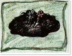 Giovanna insiste affinché la nostra attenzione colga i miracoli della natura e, tra questi, quelli che più la riempiono di buonumore sono le estese e fresche cacche di vacca. Su uno di questi miracoli inserisce due fiorellini ed impone a Fabio ed a me di fotografare la composizione.