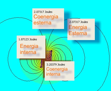 L'energia è praticamente nulla, sia all'interno che all'esterno del magnete. C'è solo la coenergia, (che potremmo chiamare energia quiescente), che vale proprio 9,22 J ed è concentrata nel volume interno al magnete.