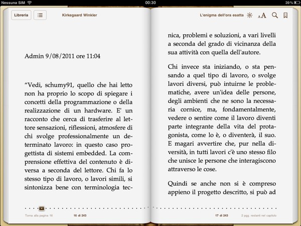 Il formato .epub è letto immediatamente, e comodamente devo dire,