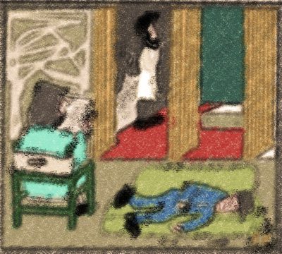 Sono nel caffè "dala Vitorina", al mio paese natale. A scuola c'è uno sciopero dei ragazzi, per le pagelle mi pare, ed i miei allievi, compatti, vi hanno aderito. Ne approfitto per recarmi a chiarire alcuni problemi relativi all’abitazione dei nonni, con il sindaco, il mio vecchio amico Piero.