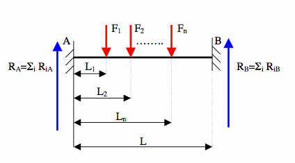 caso b) trave con doppio incastro caricata con n carichi concentrati Fi a distanze Li: