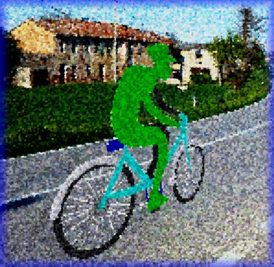 L’immobilità di Rolèo davanti alla TV era un tentativo di integrazione con l’ambiente, un modo per seguirne il lento mutare, ingannando lo scorrere del tempo sul suo corpo. Un’immobilità inseguita anche in bici. Capo leggermente inclinato in avanti, occhi puntati in un’areola della strada poco oltre l'estremità della ruota anteriore. Andatura al limite del surplace, perfino in discesa. Qualche rapido zig-zag per mantenere l’equilibrio. La lentezza doveva impedire al tempo di superarlo.