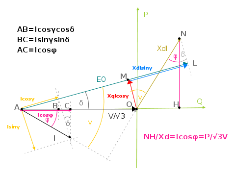L'ordinata di N è data dal segmento HN e risulta proporzionale alla potenza attiva P.