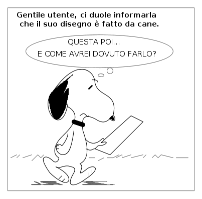 Se le raccolte di vignette Peanuts ed Altro con FidoCadJ vi hanno stancato, beh, stavolta prendetevela con mir che, in quella di Ferragosto dell'anno scorso, scrive questo commento: "admin si avvicina il Ferragosto .... abbiam pronta la nuova serie?... :)".