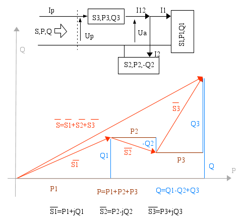Se ci riferiamo ad una sezione di linea bifilare indicando con P e Q le potenze attive e reattive che l'attraversano si può scrivere che esse sono uguali alla somma aritmetica delle potenze attive di tutti i bipoli a valle della sezione ed alla somma algebrica di tutte le loro potenze reattive.