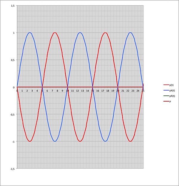 Il valore medio della p(t) è sempre P ed è la potenza chi si trasferisce definitivamente dal generatore all'utilizzatore e che qui si trasforma in altra forma: termica, meccanica, chimica ecc a seconda del tipo di utilizzatore. A tale valore si è riservato come nome dell'unità di misura il watt.
