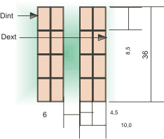 La superficie disperdente è, tenendo conto di un coefficiente di riduzione di 0,5 per le due superfici cilindriche affacciate dei due gruppi di 4 e 4+1 strati