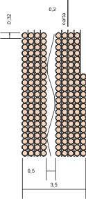 Decidiamo di distribuire l'avvolgimento, ad elica, in due strati, ciascuno di 11 spire. Dividendo l'altezza della colonna per il numero di spire di uno strato, aumentato di uno, si ottiene l'altezza di una spira, comprensiva dell'isolamento.