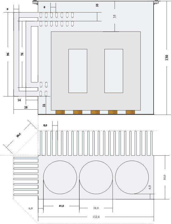 Il diametro interno dell'avvolgimento, tenendo conto del cartoccio di 3 mm tra avvolgimento di alta e quello di bassa, e di due canali d'olio da 6 mm per la circolazione dell'olio, è