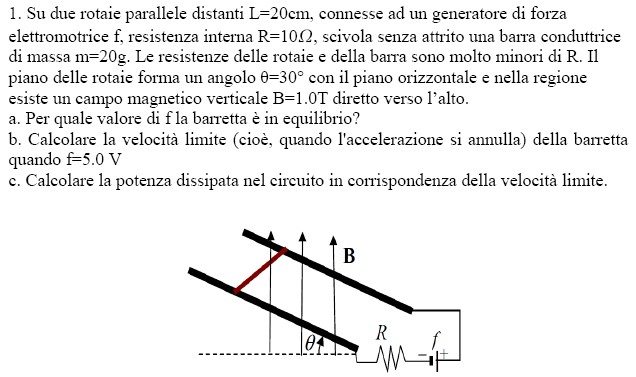 b) Se la barra si muove con velocità v verso il basso, per la legge di Faraday-Neumann-Lenz