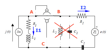 Usando la rappresentazione simbolica per i due generatori e per le impedenze della rete