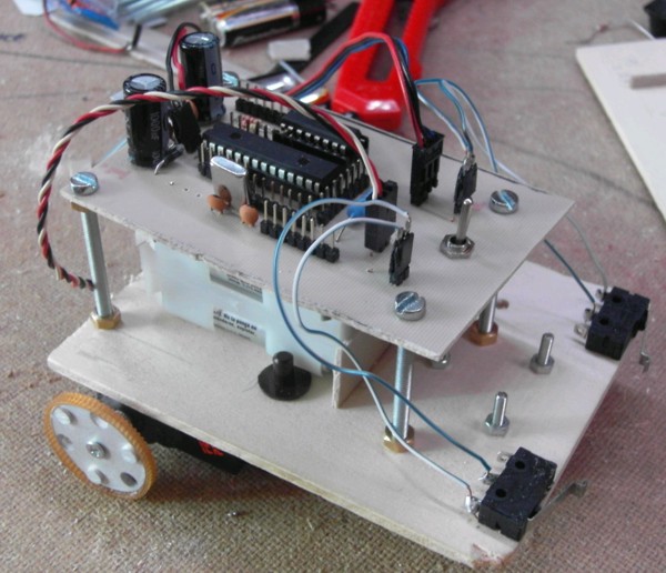 Un piccolo robot rappresenta un'applicazione molto istruttiva per chi desidera testare la sua passione per l'elettronica, la meccanica e la programmazione. Sono molti i ragazzini che, con caparbietà, affrontano l'avventura di una sua costruzione, spesso partendo da conoscenze che, a chi ha qualche anno in più, appaiono troppo acerbe. Ma i ragazzi determinati non si lasciano scoraggiare e con la tenacia, la forza, l'energia, la fantasia e la vitalità che li caratterizza, arrivano, sorprendentemente in poco tempo, al loro obiettivo. E' il caso di pierinter, presentatosi pochi mesi fa come un ragazzo a digiuno di nozioni teoriche, ma deciso ad alimentare la passione che sentiva dentro. Presentiamo allora in Home page il risultato del suo lavoro, spedito quasi con timore, ma con orgoglio, in un post del forum. Si tratta di una realizzazione che non ha, ovviamente, particolari pretese tecniche, ma che vuole essere la dimostrazione delle potenzialità che ci sono nei nostri ragazzi.