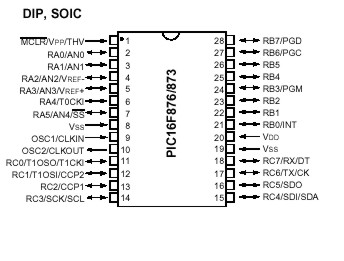 Lasciate perdere i piedini che iniziano con RA,RC,(guardate la piedinatura) a noi interessano solo quelli che iniziano con RB e che insieme ( sono 8) costituiscono la cosiddetta PORTB. Vi basti sapere che ognuno di questi piedini può essere utilizzato come input o come output, e nel nostro specifico caso da RB0 a RB5 li utilizziamo come output, mentre RB6 e RB7 come input.