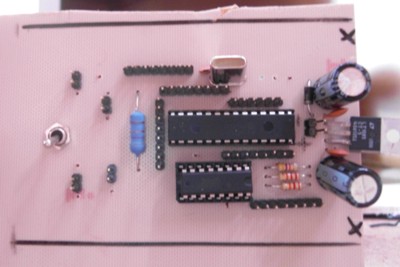- OSC1/OSC2(pin 9,10)---> tra il pin 9 e 10 va collegato un quarzo ( io ho usato un quarzo da 4 MHz), e entrambi i piedini vanno collegati poi a massa attrav erso un condensatore da 22 pF, come si vede dallo schema sono input e vanno collegati ai proprio switch