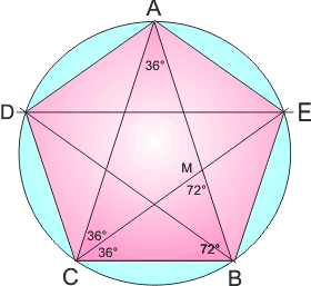 E' un triangolo isoscele i cui angoli alla base sono di 72°. La bisettrice dell'angolo alla base interseca il lato obliquo opposto in un punto che lo divide secondo la media ed estrema proporzione. Il triangolo di partenza CAB è simile al triangolo MCB, (il quale dunque è pure aureo, con CM = CB) ed il triangolo CMA è isoscele, con CM = AM.