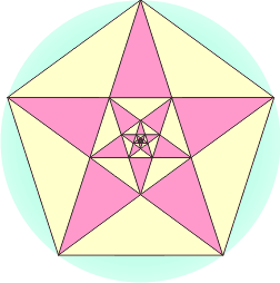 Le diagonali del pentagono, che sono i lati obliqui dei due triangoli aurei, formano una stella a cinque punte. La figura centrale della stella è di nuovo un pentagono regolare. Dentro di essa si può ridisegnare una stella a cinque punte, dentro cui c'è un nuovo pentagono regolare. E' evidente che si può teoricamente procedere all'infinito. Anche in questo caso si può dire che la parte è "identica" al tutto nel senso che disegnata una figura non si può capire a quale livello di dimensioni siamo. Tale struttura è detta auto-similitudine.
