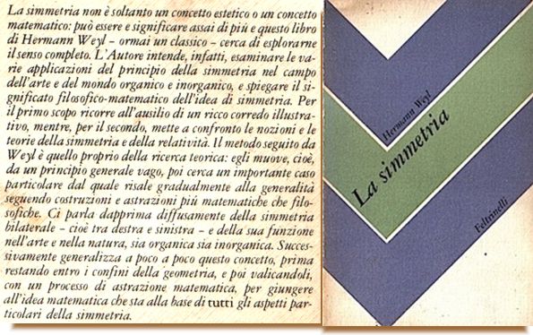 Un libro classico è Simmetry che Hermann Weyl, pubblicò a Princetown nel 1952, edito in Italia da Feltrinelli nel 1962. La figura seguente mostra l'edizione del 1975 nella collana SC/10.