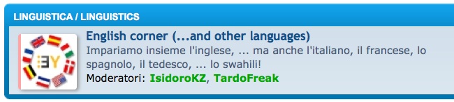 L'articolo lo pubblico soprattutto per segnalare la sezione del forum di linguistica, dove si è deciso di portare avanti quest'idea. L'idea c'era già quando si era pensato ad una sezione dedicata all'inglese, ma si è deciso di metterla più in evidenza dopo la richiesta di Sparafucile.