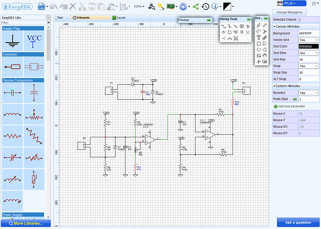 EasyEDA è un software gratuito completamente on-line per la progettazione ed il disegno di circuiti stampati, che offre diversi strumenti in un unico ambiente facilmente accessibile da qualsiasi piattaforma.