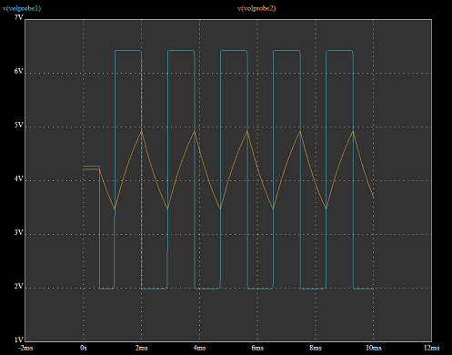 Purtroppo non tutti i componenti presenti nella libreria hanno un modello da poter utilizzare nella simulazione. Questo è il caso preso in esempio dal mio progetto, dove il componente principale, un comparatore LM2903D, non aveva un modello di conseguenza la simulazione non dava alcun esito apprezzabile. Al solo fine di poter osservare indicativamente il comportamento del circuito, il comparatore è stato sostituito con un comune amplificatore operazionale uA741, di cui è presente il modello equivalente. La nuova simulazione ha dato l’esito aspettato, ovvero un oscillatore a frequenza di circa 500Hz, che serve per pilotare il buzzer che indica il corto circuito.