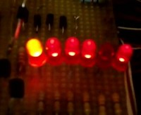 Basato su CD4017 questo semplice circuito è simile al famoso "effetto supercar", con la differenza che le uscite dell' integrato vengono utilizzate al contrario. Il risultato è una serie di led accesi con un led spento che scorre avanti e indietro.