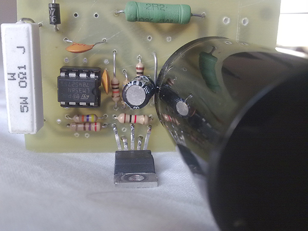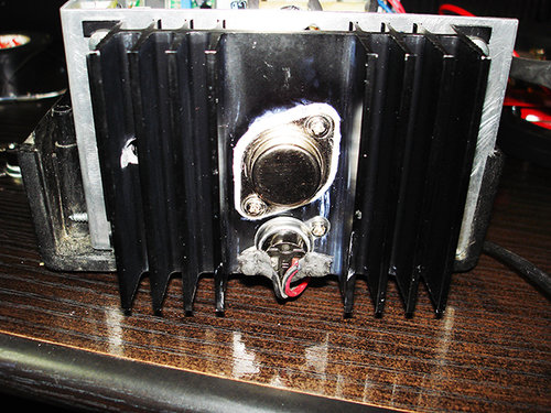 Giunsi finalmente al primo collaudo. Ovviamente il prodotto non risultò perfetto e quindi dovetti apportare alcune modifiche al fine di migliorarne le prestazioni. Eccolo pronto per il montaggio nel luogo a lui dedicato; ho aggiunto anche il dissipatore posteriore dove è fissato il TO3.