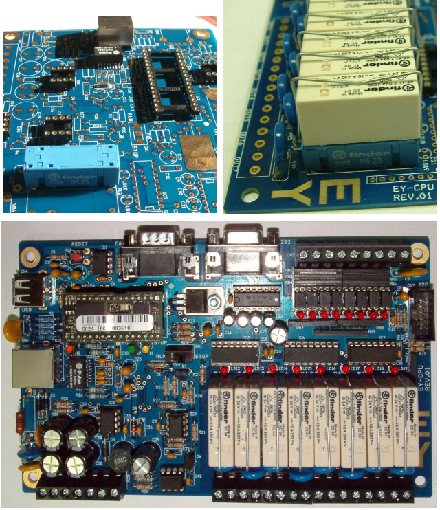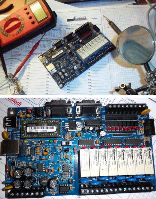 Il provvidenziale intervento di libero0000 ha permesso di risolvere il primo problema che ha colpito duramente il mio progetto. Sapevo che i relè di questi tempi sono introvabili, ma con una certa leggerezza ho utilizzato nel progetto un relè che già conoscevo da tempo e che avevo adottato in passato. Purtoppo nel rimediare i materiali per i primi esemplari mi sono trovato subito "in buca" con le solite marche che avevo in testa e, errore del progettista testardo, non ho guardato oltre il mio naso. Così libero0000 mi ha segnalato che pure Finder produceva tale relè e ne ha pure comperati su Ebay un numero sufficiente a coprire i primi KITS. Cosa ancora più bella è che questi relè hanno pure l'opzione di essere montati su zoccolo, il che da un'ulteriore possibilità alla scheda. Approfittando di tale suggerimento ho poi verificato che tale relè è disponibile a volontà e in stock, alla faccia delle 47 settimane di consegna di quelli che ho usato io nel mio KIT e che avevo già nel cassetto. Ora libero000 è impaziente di cominciare a programmarlo con CoDeSys, ma deve ancora per un po' usarlo come fermacarte sulla scrivania, un'altro dei possibili utilizzi del PLC didattico.