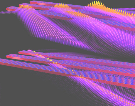 http://www.lescienze.it/news/2012/08/10/news/invisibilit_unidirezionale_metamateriali_indice_di_rifrazione-1203916/, Cortesia Christoph Bersch) è una illustrazione artistica di dati sperimentali che dimostrano invisibilità unidirezionale: la luce incidente da sinistra su strutture ottiche PT simmetriche (in rosso / blu) è fortemente diffusa (in alto), mentre la luce proveniente dal lato opposto non lo è affatto (in basso) e le strutture diventano invisibili :