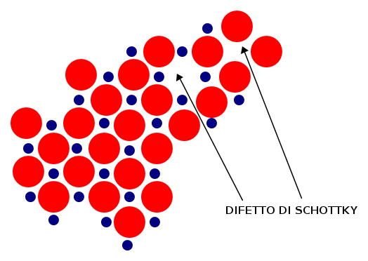 Si crea quando sia catione che anione, cioè quando sia ione positivo che negativo, sono assenti dal reticolo. Si viene a creare una doppia lacuna catione-anione, come riportato in figura: