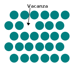 Essa si forma in seguito a disturbi locali che si generano durante la formazione dei cristalli. Oppure si possono formare dopo che il cristallo è completato, ma questa volta per via di riarrangiamenti atomici. I riarrangiamenti atomici sono dovuti alla mobilità tipica degli atomi stessi. Le vacanze sono difetti di equilibrio nei metalli, all'interno dei quali la loro concentrazione arriva ad essere di una ogni diecimila atomi.