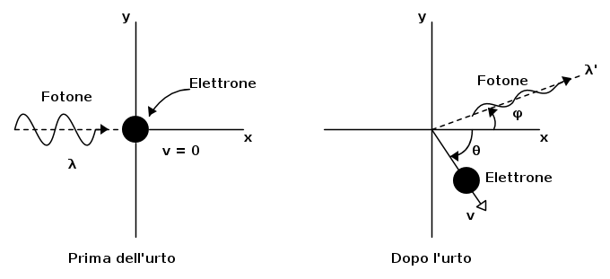 Poiché il fotone incidente trasferisce un po' della sua energia all'elettrone con cui entra in collisione, il fotone diffuso deve possedere una energia inferiore E'; dovrà quindi avere una frequenza inferiore ν' (pari ad E' / h) e quindi si avrà una lunghezza d'onda più elevata pari a λ' (cioè a c / ν').
