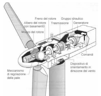 La seguente foto, tratta da http://energia.efni.it/energia-eolica/composizione-di-un-aerogeneratore/, ritrae lo spaccato di una navicella di un aerogeneratore :