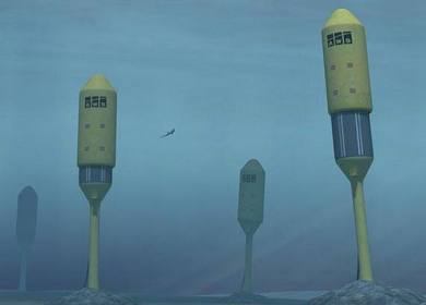 - sistemi con impianti sommersi : sfruttano il principio di Archimede e consistono in una struttura sommersa e fissata al fondo marino; la parte superiore della struttura è un cilindro cavo che si muove in verticale e sfrutta il cambiamento di pressione idrostatica dovuto al passaggio delle onde; l'energia meccanica derivante è trasformata in energia elettrica;