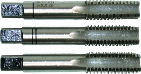 Per fori ciechi di diametro piccolo e per metalli con elevata durezza, viene utilizzata una serie di tre maschi: