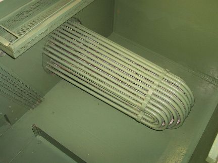 - mantello (shell) che contiene il fascio tubiero e, spesso, anche alcuni diaframmi, i quali servono ad incrementare la turbolenza del fluido che scorre nel mantello, rendendo la trasmissione del calore più efficiente.