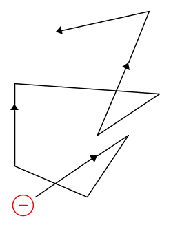 Qualora accada il contrario, cioè applicando un campo elettrico E, le cose cambiano e ogni elettrone acquista una accelerazione a=F/m uguale a -eE/m opposta al campo elettrico e non si hanno più delle spezzate, come prima, ma degli archi di parabola, più o meno come in figura: