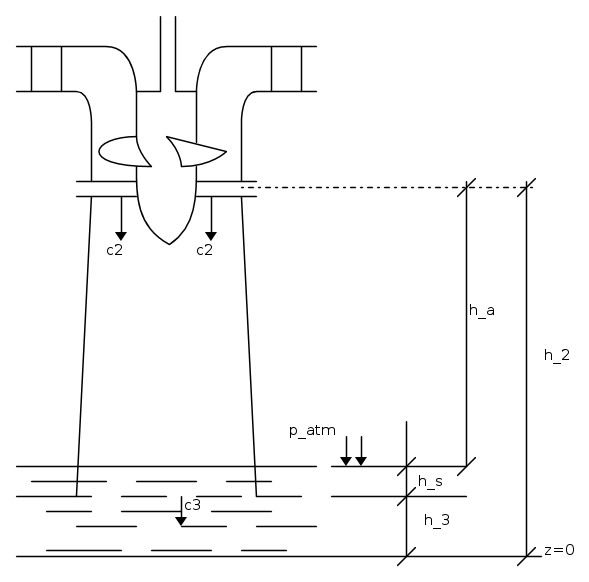 Poiché nel canale di scarico si è alla pressione atmosferica, all'uscita della girante è necessario avere una pressione minore di quest'ultima e ciò porta ad un aumento virtuale del salto utile Hu.