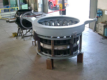 Questa invece (tratta da http://www.cmr-hydro.it/prodotti-turbine-francis3.htm), ritrae il distributore di una turbina Francis :