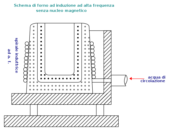 Per questo motivo nei forni fusori senza nucleo magnetico non si va al di là di alcune migliaia di Hz nella frequenza delle correnti di alimentazione.