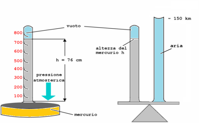 Tale dispositivo è detto barometro e funziona come una bilancia in cui un braccio viene caricato con la colonna di mercurio del tubo mentre l'altro con una colonna d'aria che ha una sezione della stessa area e che si estende fino alla sommità dell'atmosfera (cioè per 150 km circa dalla superficie terrestre).