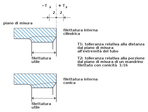 | A | Classe più ristretta di tolleranza della filettatura esterna di tubazioni per accoppiamento non a tenuta sul filetto |