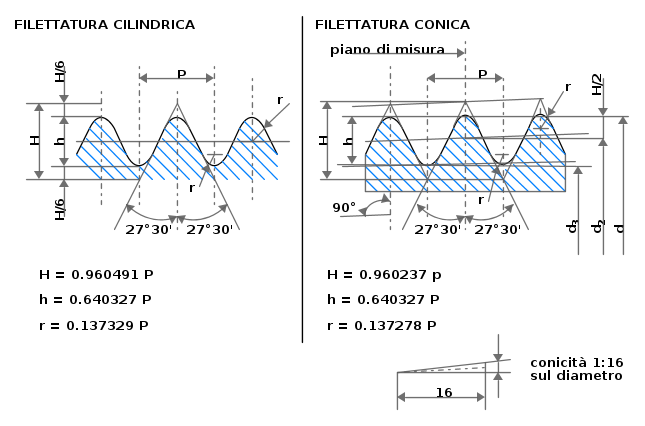 - filettature Whitworth;