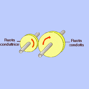 dove n e d sono il numero di giri nell'unità di tempo e il diametro, propri della ruota motrice, mentre n' e d' sono propri della ruota condotta.
