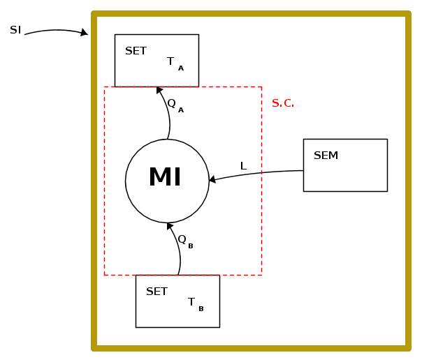Vediamo, dalla figura, che è possibile fornire energia meccanica al sistema facendo fluire energia termica dal SET a temperatura minore a quello a temperatura maggiore. Ora sappiamo bene che un processo di questo tipo non può avvenire spontaneamente e quindi dobbiamo intendere, in questo caso, l'energia meccanica fornita al sistema come il costo termodinamico che deve essere "speso" per questo tipo di processo.