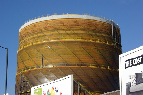 La seguente figura, tratta da http://www.fotothing.com/ratbag32x/photo/8168eff06b269d33526a54b034d27eb4/, ritrae un serbatoio di stoccaggio del gas a Sheffield :