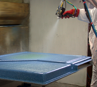 Nell'immagine che segue, tratta da http://www.elfren-rimat.com/default.asp?Szn=Gelcoat&Lng=Ita , è rappresentata una fase di spruzzatura del gel-coat: