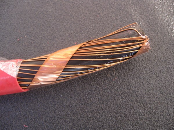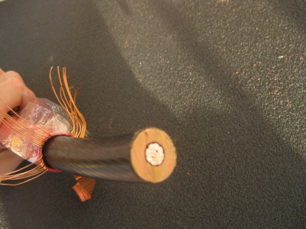 I trefoli di rame vengono preparati per creare una vera e propria treccia. Questa va portata fuori dalla testa del cavo per il collegamento a terra (con gli altri schermi degli altri cavi)